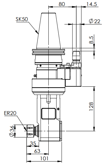 ◎?SK50-ER20 90° Angle Head-Longer (AHD Type)