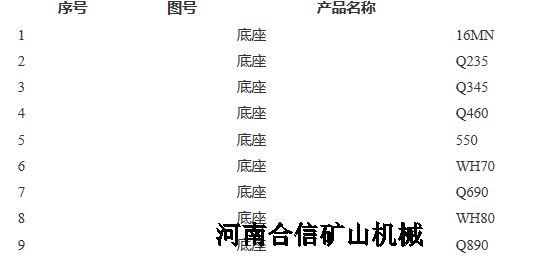 液壓支架底座規(guī)格型號: